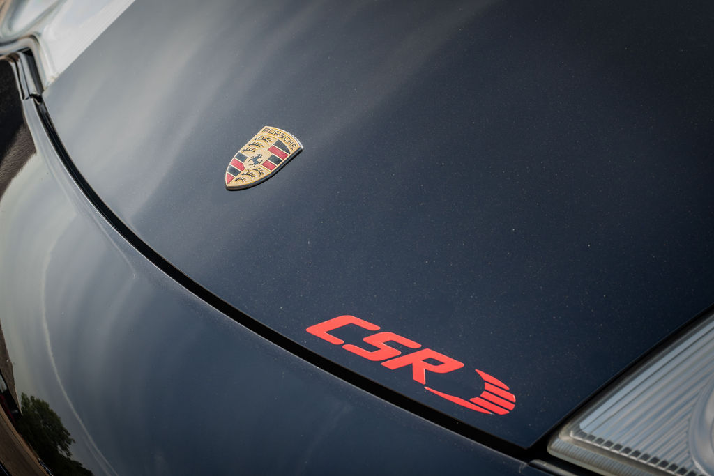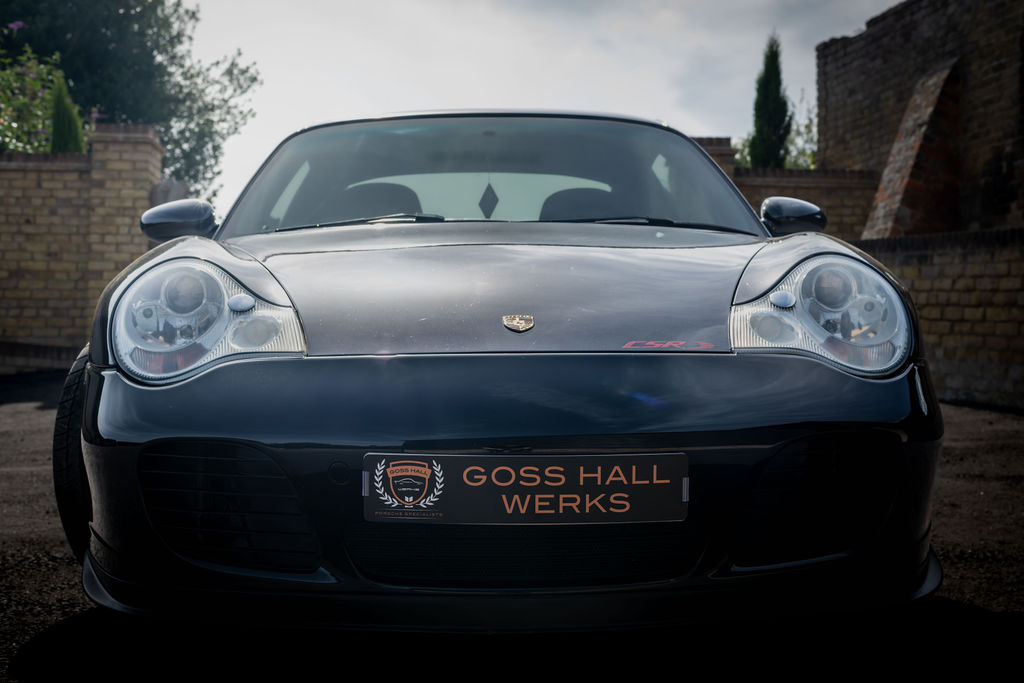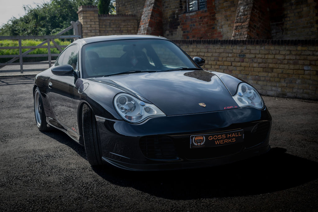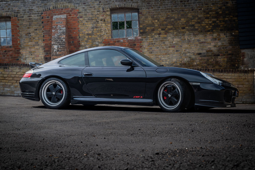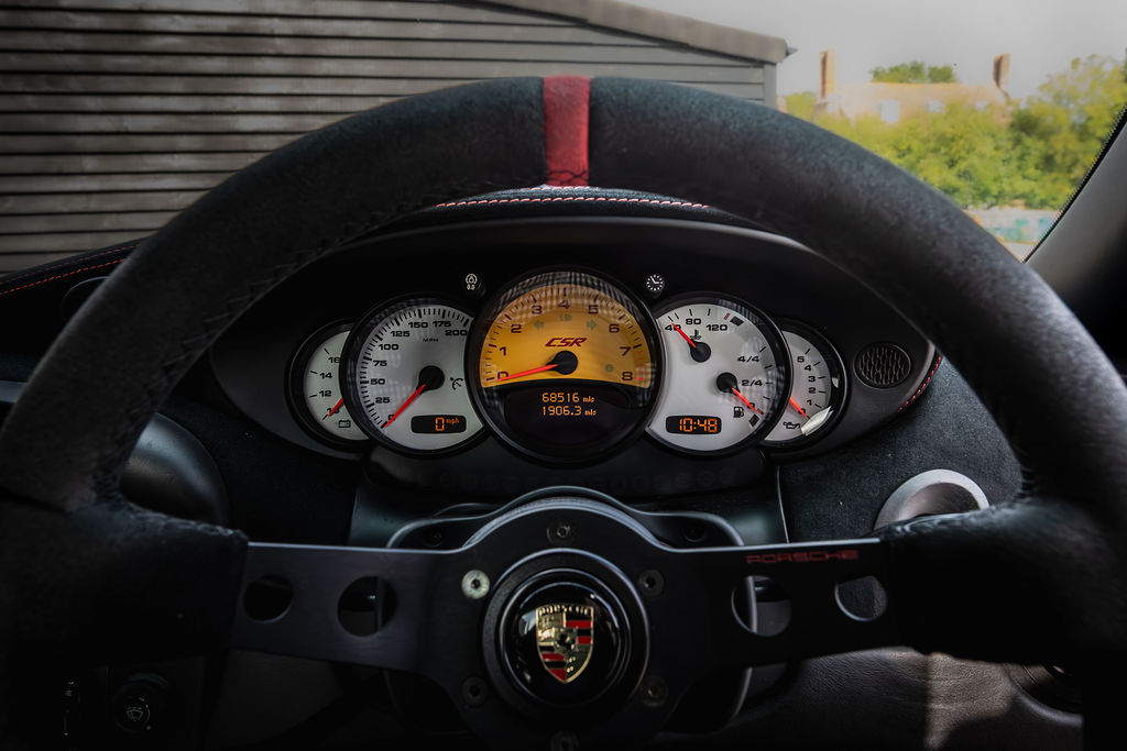 A stunning Porsche 911 Carrera 4S CSR, reworked by renowned marque specialists RPM Technik to bespoke CSR specification at a cost of £40K .Powered by a 3.6 litre flat six with upgraded IMS bearing, coupled to a six speed manual transmission with a lightweight clutch and flywheel. The car has covered just 68600 miles from new. First registered on 1 March 2004, this C4S is an original C16 UK market car. The conversion at RPM Technik was completed in September 2018. This work included a long list of upgrades including installing a more robust IMS bearing, fitting a lightweight clutch and flywheel, short shift kit, suspension upgraded to KW Variant 3 Coilovers, along with bespoke CSR lower arms, new top mounts and a H&R anti roll bar kit. RSS engine mounts were also installed, as well as a full CSR exhaust system which sounds phenomenal, IPD plenum and throttle body, and a BMC air filter. It rides on 18 inch Fuchs alloy wheels, with satin finish rims and black centres, which are in great shape and wrapped in new Michelin PS2 tyres. The front seats have been swapped out for Recaro Pole Position buckets with new custom Porsche Houndstooth inserts just fitted. The dashboard and door cards have been re trimmed in black Alcantara with red deviating stitching. The gear knob and handbrake have had similar treatment, CSR branded carbon door sill panel inlays and a CRS yellow rev counter also contribute to the special sense of occasion. Also fitted is a Porsche Motorsport deep dish steering wheel by Momo with red top centre marker, while the original stereo system has been upgraded with an aftermarket Alpine Bluetooth and DAB head unit. Exterior upgrades include the unique carbon fibre rear engine lid and integrated ducktail spoiler. There are also carbon fibre wing mirrors and carbon dipped sill panels. The front lip Spoiler from 996 Turbo now fitted, the car presents in excellent condition throughout, benefitting from ceramic coating and PPF applied to the most exposed areas of the paintwork. The car is HPI clear and shows no signs of past accident damage. The last service was carried out by Copse Automotive in February 2023 and the car has covered under 2,000 miles since. New brake discs and pads were fitted in March 2022 when the car also had a major service by the same specialists. Supplied with all original handbooks and two keys, space saver spare wheel, jack and tool kit. A comprehensive collection of invoices for all service and conversion work and the stamped service book is also present. MOT valid until September 2026 with no advisories.