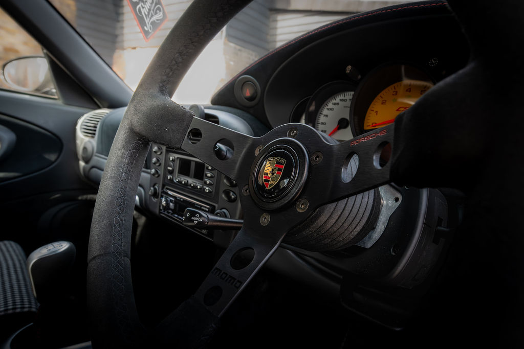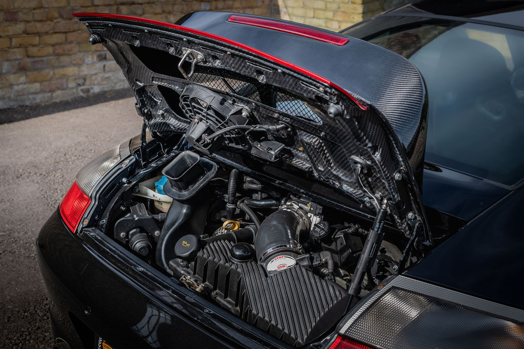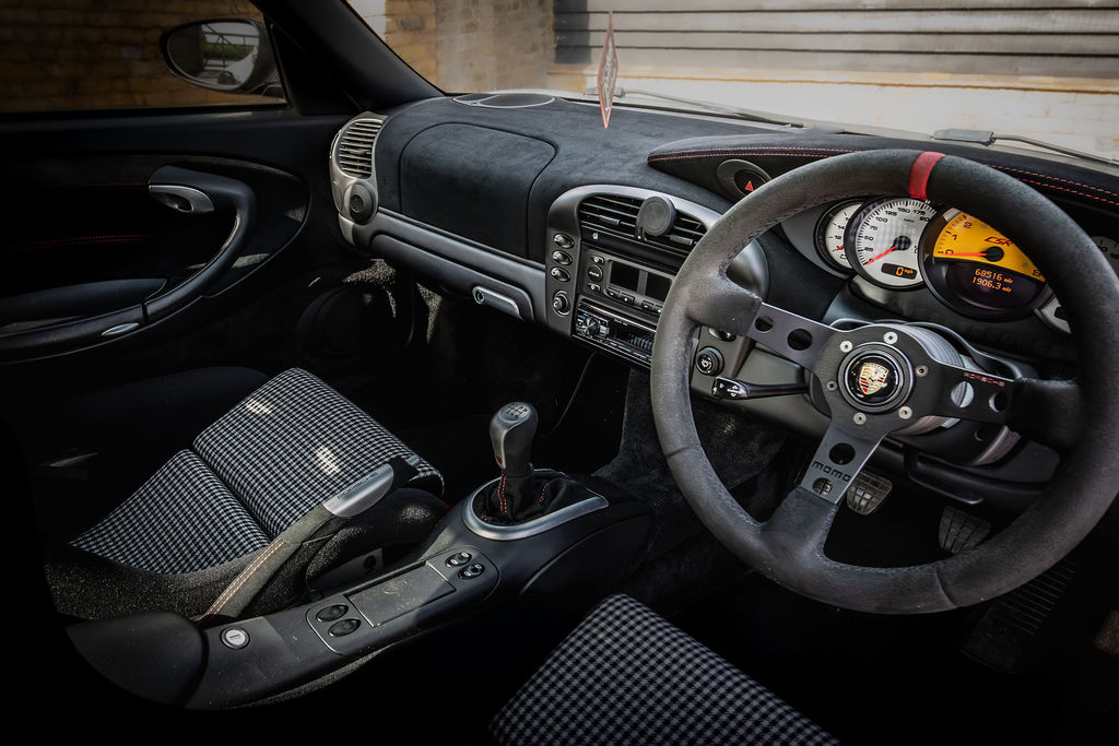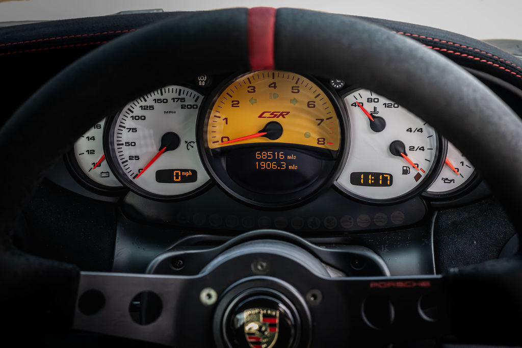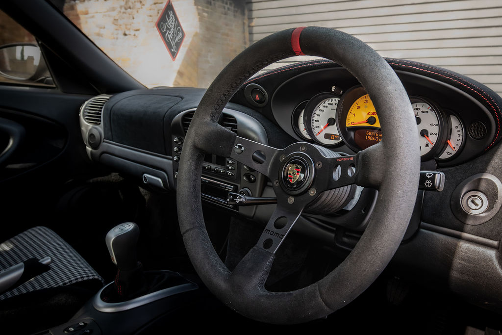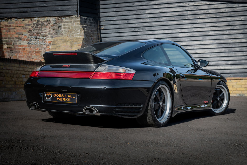 A stunning Porsche 911 Carrera 4S CSR, reworked by renowned marque specialists RPM Technik to bespoke CSR specification at a cost of £40K .Powered by a 3.6 litre flat six with upgraded IMS bearing, coupled to a six speed manual transmission with a lightweight clutch and flywheel. The car has covered just 68600 miles from new. First registered on 1 March 2004, this C4S is an original C16 UK market car. The conversion at RPM Technik was completed in September 2018. This work included a long list of upgrades including installing a more robust IMS bearing, fitting a lightweight clutch and flywheel, short shift kit, suspension upgraded to KW Variant 3 Coilovers, along with bespoke CSR lower arms, new top mounts and a H&R anti roll bar kit. RSS engine mounts were also installed, as well as a full CSR exhaust system which sounds phenomenal, IPD plenum and throttle body, and a BMC air filter. It rides on 18 inch Fuchs alloy wheels, with satin finish rims and black centres, which are in great shape and wrapped in new Michelin PS2 tyres. The front seats have been swapped out for Recaro Pole Position buckets with new custom Porsche Houndstooth inserts just fitted. The dashboard and door cards have been re trimmed in black Alcantara with red deviating stitching. The gear knob and handbrake have had similar treatment, CSR branded carbon door sill panel inlays and a CRS yellow rev counter also contribute to the special sense of occasion. Also fitted is a Porsche Motorsport deep dish steering wheel by Momo with red top centre marker, while the original stereo system has been upgraded with an aftermarket Alpine Bluetooth and DAB head unit. Exterior upgrades include the unique carbon fibre rear engine lid and integrated ducktail spoiler. There are also carbon fibre wing mirrors and carbon dipped sill panels. The front lip Spoiler from 996 Turbo now fitted, the car presents in excellent condition throughout, benefitting from ceramic coating and PPF applied to the most exposed areas of the paintwork. The car is HPI clear and shows no signs of past accident damage. The last service was carried out by Copse Automotive in February 2023 and the car has covered under 2,000 miles since. New brake discs and pads were fitted in March 2022 when the car also had a major service by the same specialists. Supplied with all original handbooks and two keys, space saver spare wheel, jack and tool kit. A comprehensive collection of invoices for all service and conversion work and the stamped service book is also present. MOT valid until September 2026 with no advisories.